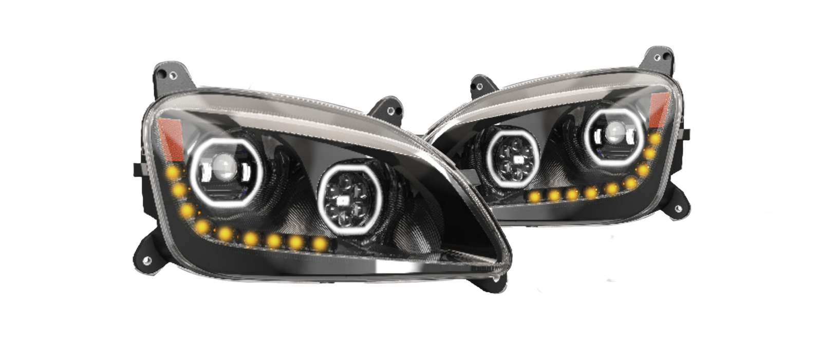 PETERBILT 587/ 579 2012-21 LED HEADLIGHT W/ HALO & SEQUENTIAL TURN SIGNAL BLACK (PASSENGER)
