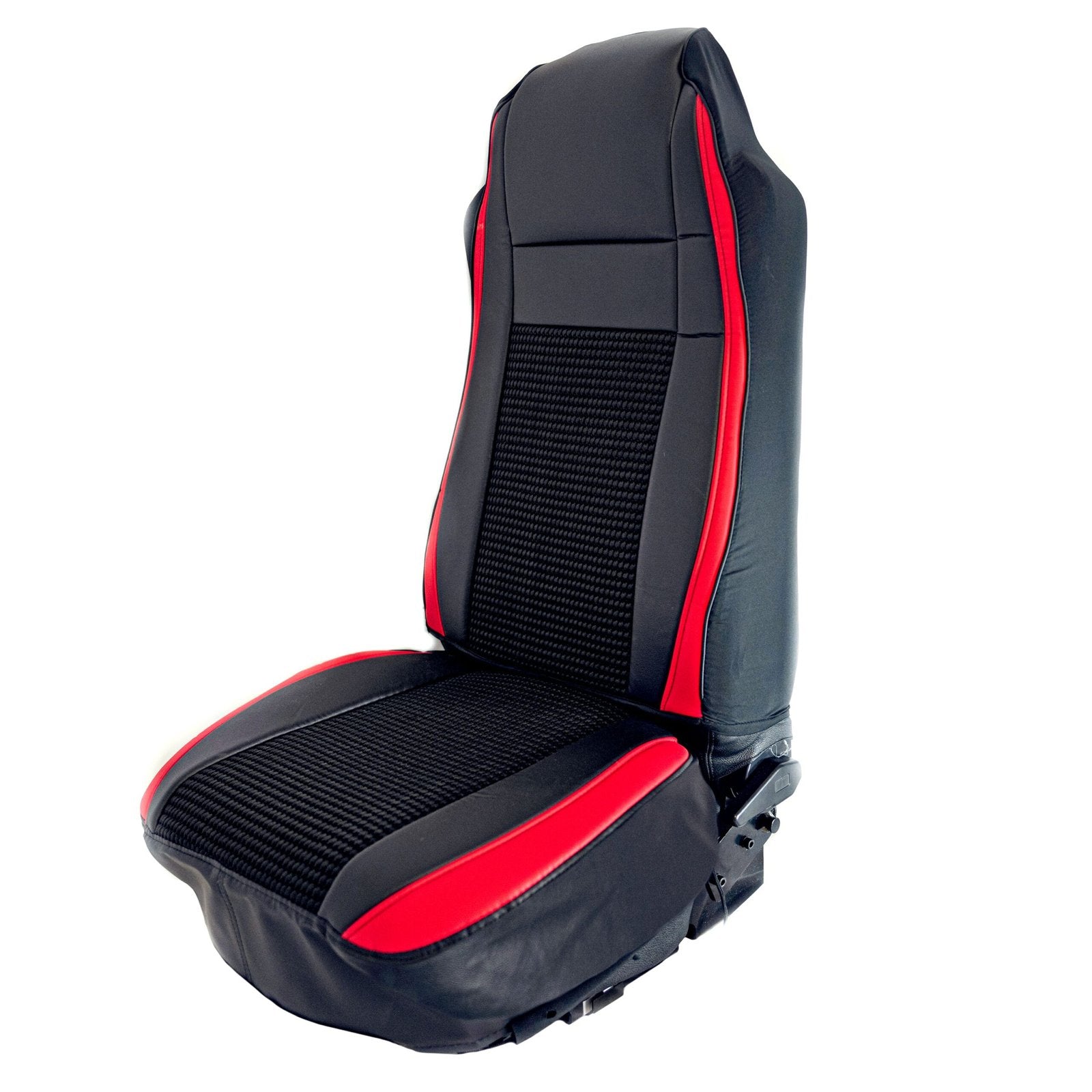 UNIVERSAL SEAT COVER W/ PLEATED FABRIC & LEATHERETTE TRIM - RED