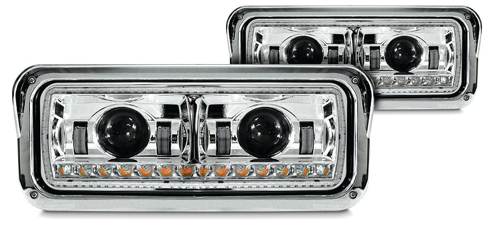 UNIVERSAL LED HEADLIGHT ASSEMBLY W/ HALO & SEQUENTAIL TURN SIGNAL CHROME (DRIVER)