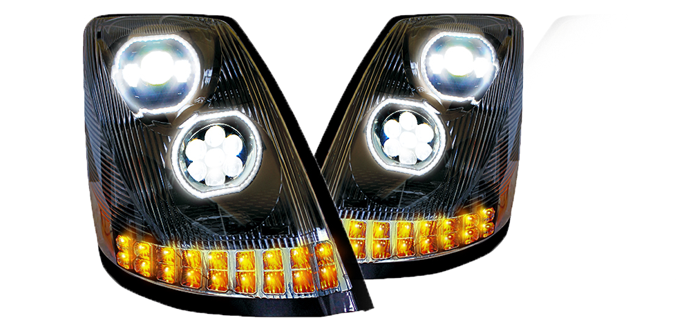 VOLVO VN/ VNL 2003-17 LED HEADLIGHT W/ HALO & SEQUENTAIL TURN SIGNAL BLACK (DRIVER)