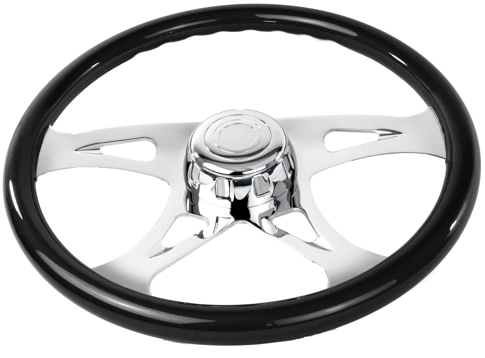 18'' BLACK WOOD STEERING WHEEL WITH CHROME VIBRANT DESIGN SPOKES