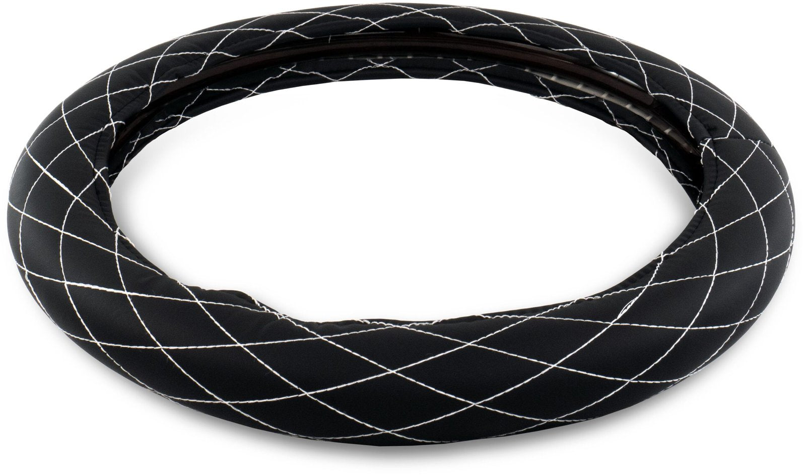 18" DIAMOND CUSHION STEERING WHEEL COVER BLACK W/ WHITE STITCHING