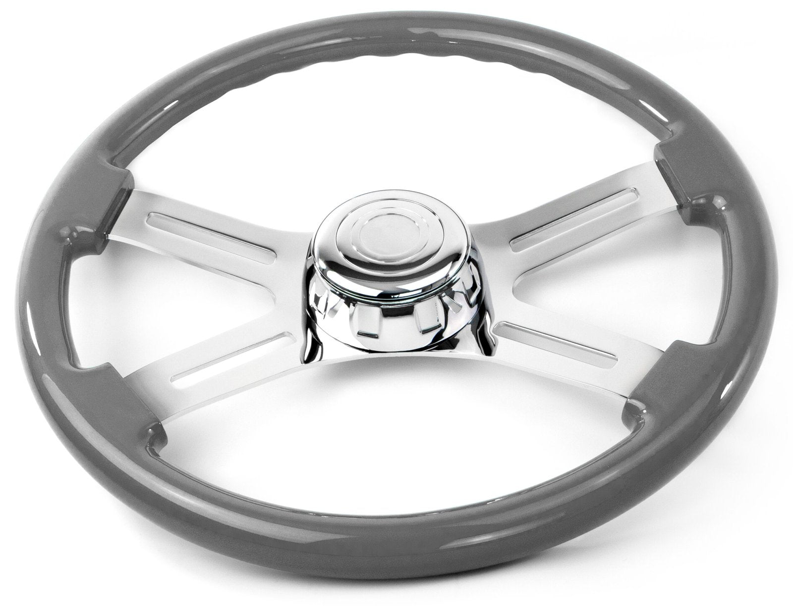 18" GRAY WOOD STEERING WHEEL WITH 4 CHROME SPOKES