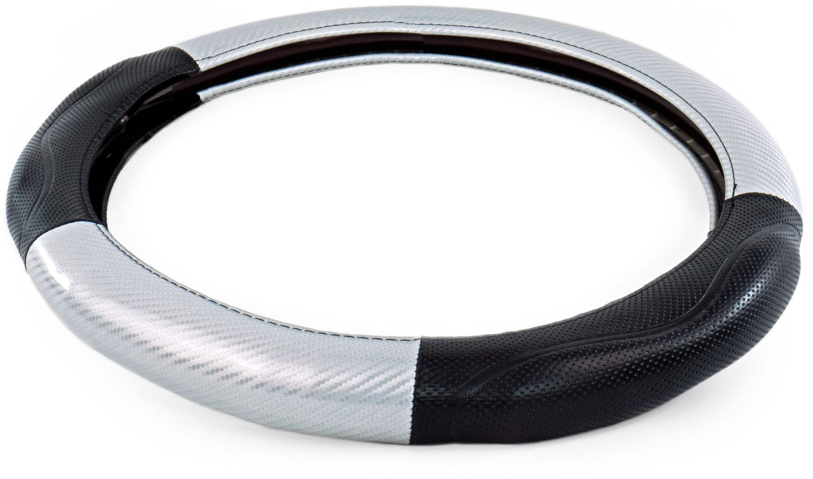 18" MEMORY FOAM CARBON FIBER STYLE STEERING WHEEL COVER - SILVER