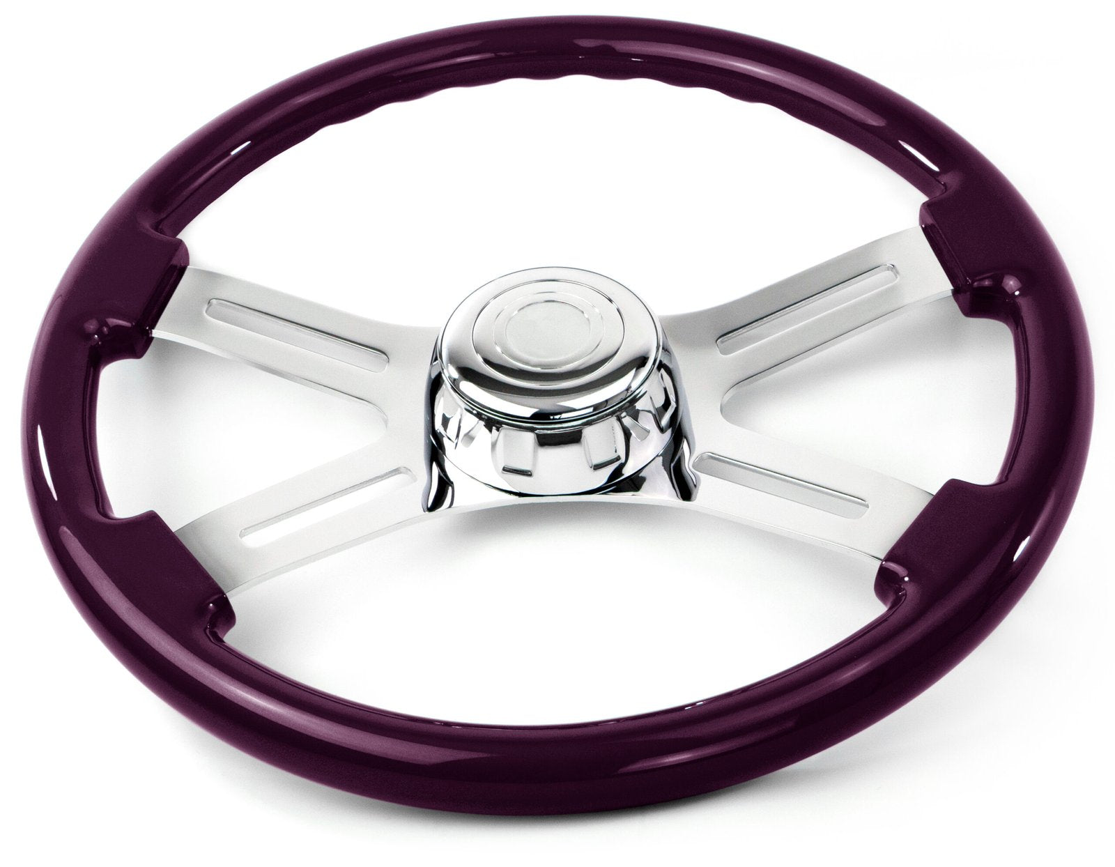 18'' PURPLE WOOD STEERING WHEEL WITH 4 CHROME SPOKES