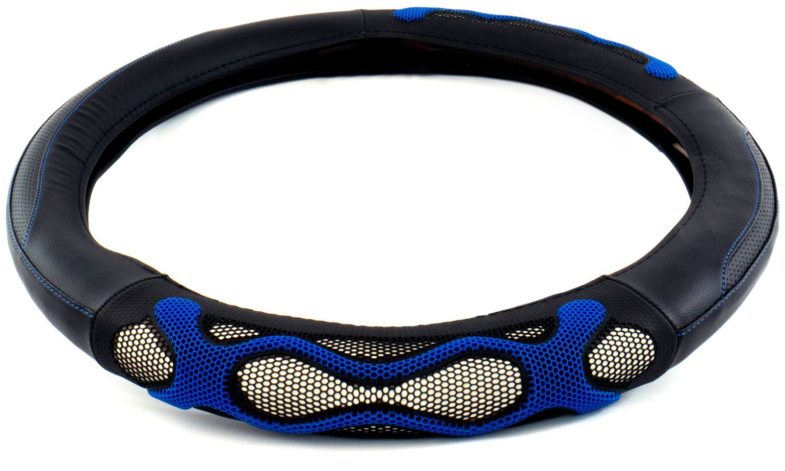 18" RUBBER WAVES ANTI-SLIP STEERING WHEEL COVER - BLUE