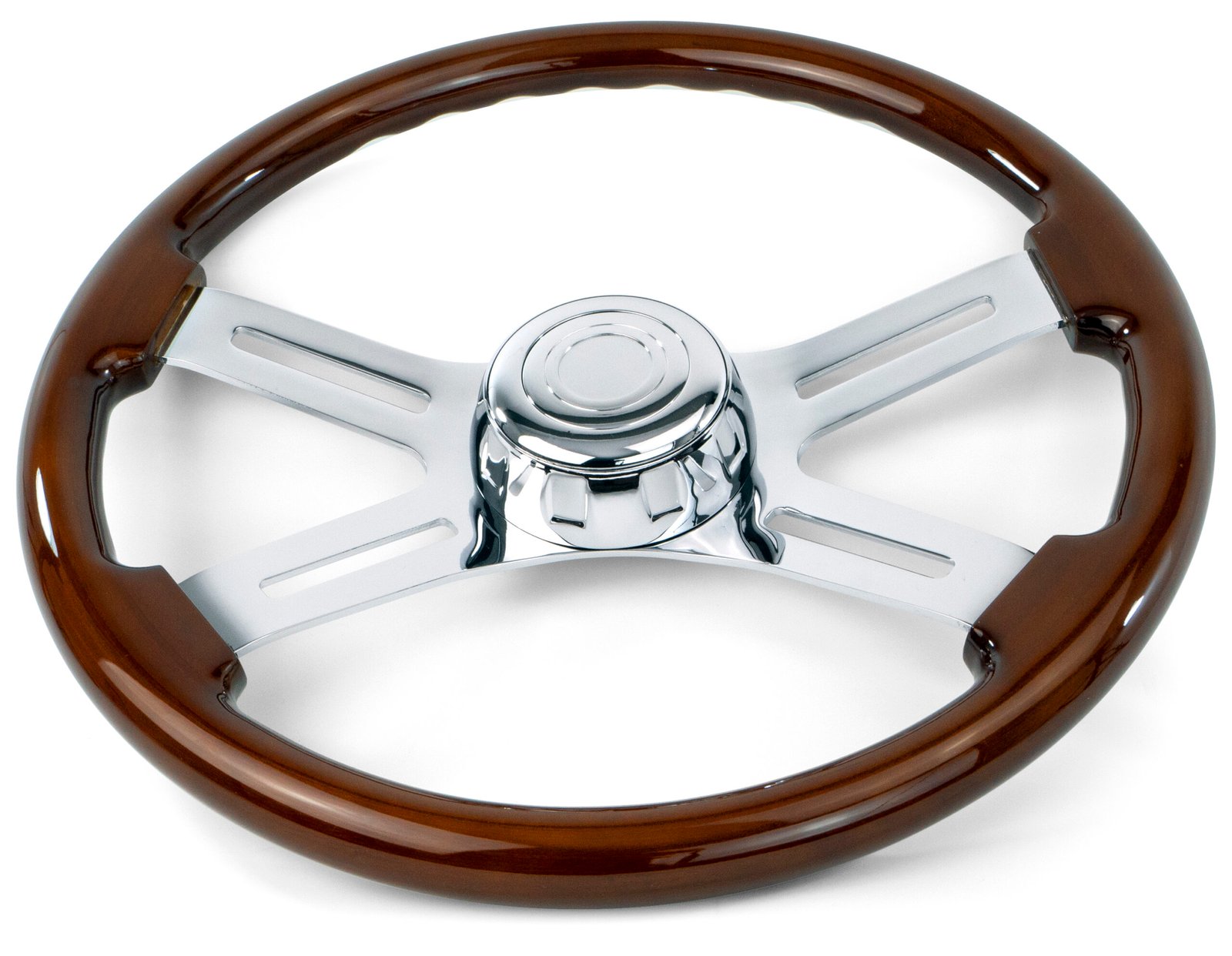 18'' WOOD STEERING WHEEL WITH 4 CHROME SPOKES